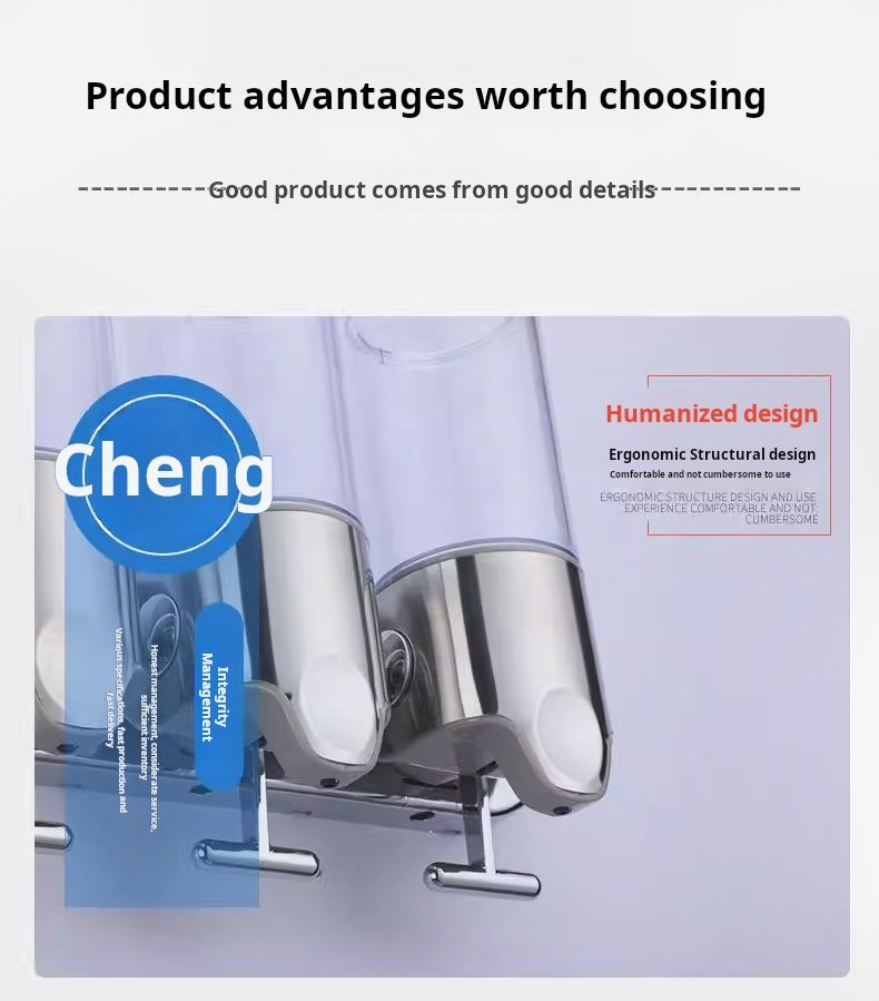 Be the first to review “Three-in-one hole-free wall-mounted pull-rod type hand soap, shampoo, and body wash dispenser with manual soap dispenser” Cancel reply